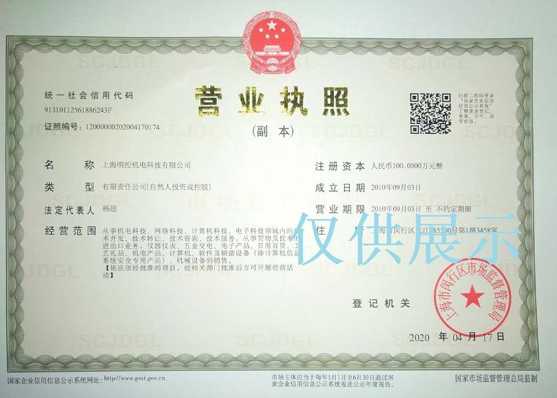 答:明控機電為正規公司,使用款到發貨的方式進行交易。交易流程通常為:簽訂合同,支付貨款,派送貨物。