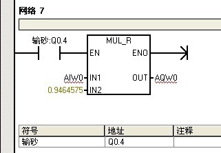 應(yīng)該先把a(bǔ)iw0的值轉(zhuǎn)成實(shí)數(shù)吧;比如說先存儲(chǔ)到vw200,再轉(zhuǎn)成實(shí)數(shù)vd2000,然后再用實(shí)數(shù)乘法,存到實(shí)數(shù)vd4000,在經(jīng)過轉(zhuǎn)換變成vw300,再輸出到aqw0