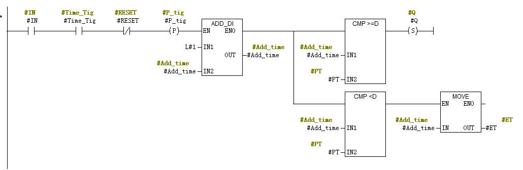 輸入變量IN用于定時(shí)器激活信號(hào)的輸入,RESET用于復(fù)位定時(shí)器,而PT用于設(shè)定需要定時(shí)的時(shí)間。timer_num用于將定時(shí)器編號(hào)傳入。