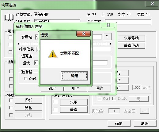 各位大俠好,小弟在做自動售貨機的畢業設計,但是在組態王上的投幣變量類型不知道要怎么選,我之前選的I/O離散,后面在畫面處出現錯誤,圖在后面。求教