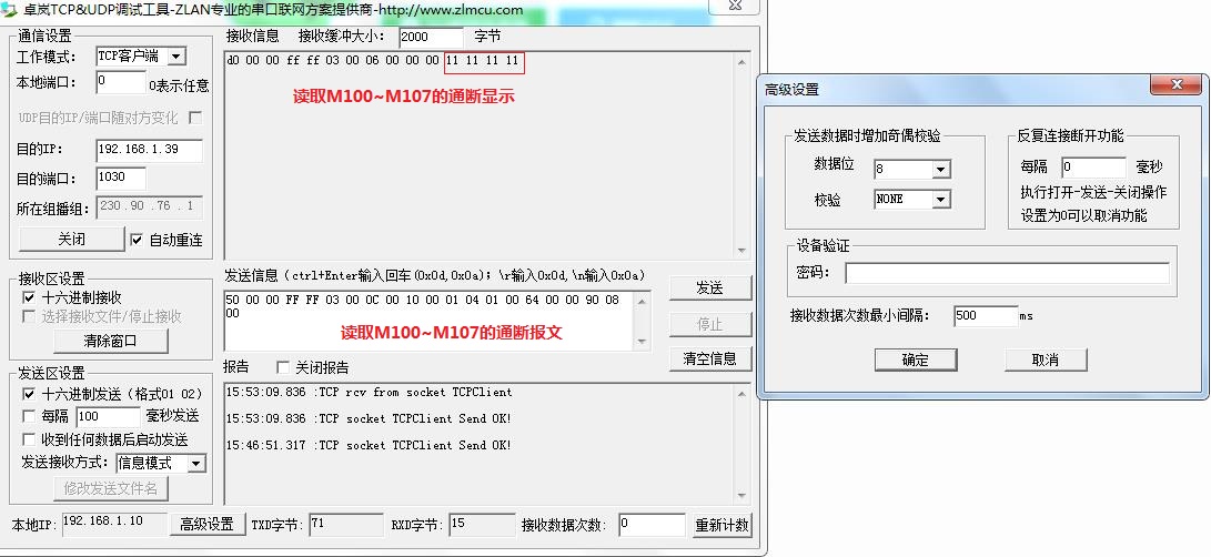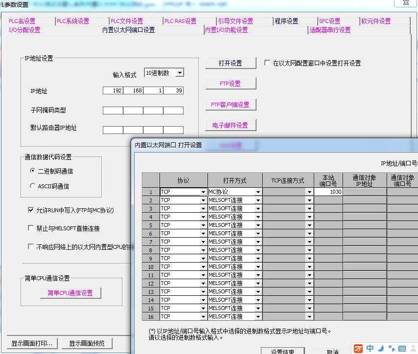 剛才試了下,還是不對---網絡調試助手連接不上;麻煩幫我看看我這樣對不對:1、我使用USB連接PLC,PLC型號為L06CPU-CM;2、寫程序(一句話:DMOV K255 K8M100);3、設置PLC參數->內置以太網設置->打開設置,設置IP地址、MC、端口;4、轉換程序;5、PLC寫入;6、PLC重新上電上位機軟件我也下了個卓嵐的,設置和圖片中一樣(IP,端口等于PLC是對應的)但是完成后,打開后,“發送”按鈕是灰色的,另外,PLC的“Err”指示燈是紅色的網