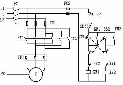 這是接觸器互鎖加按扭互鎖,接觸器互鎖是為了防止因過流造成的觸點熔在一起后的短路,