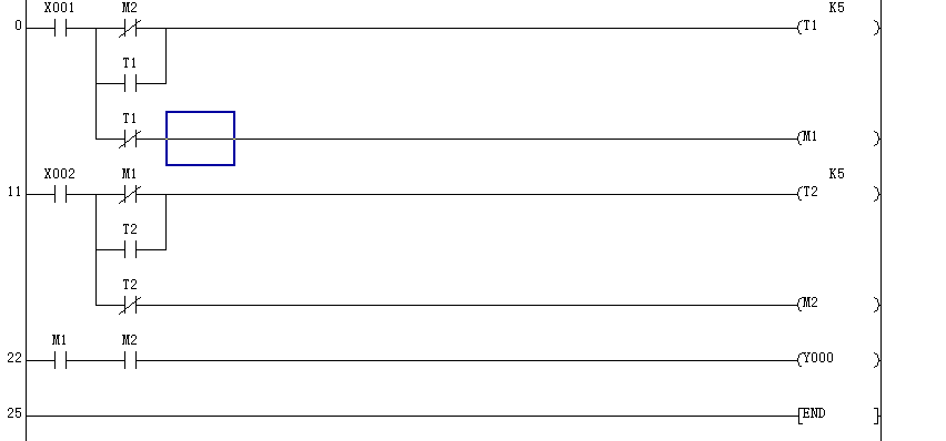 雙啟  控制一個氣缸       按下兩個雙啟按鈕 (按下兩個按鈕之間的時間差不能相差0.5S,超過0.5S后雙啟無效)  線圈吸合,  松開后線圈失電       三菱FX1N   plc