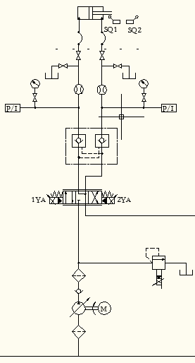 (1)行程開關SQ1被壓下,液壓缸右行至極限位置按下SQ2,比例溢流閥將壓力調至2倍額定壓力,保壓2分鐘后溢流閥將壓力調回默認值,液壓缸左行至極限位置壓下SQ1,溢流閥將壓力調至2倍額定壓力,保壓2分鐘。如此往復。