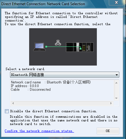 PLC是CP1H-EX只有以太網口,用直通網線連PLC,總無法連上,查看Direct Ethernet Connection 沒有OMRON的網卡選項,怎么修復呢?