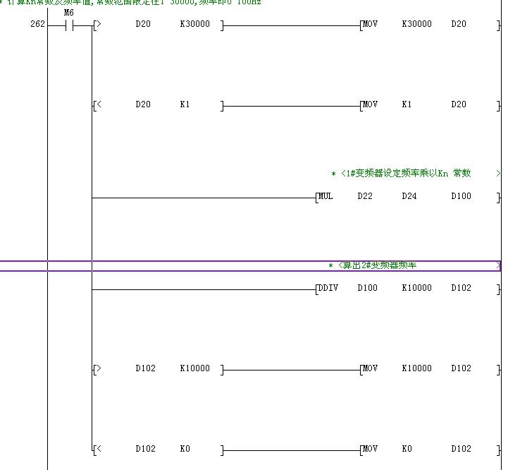 我這有五臺變頻器分別控制五臺電機,分為兩組,一組兩臺,一組三臺,和PLC以及觸摸屏連接,每組電機之間按一定的比例調節轉速(化工輸送用),當沒組電機轉速調好后,可以單獨調節每組的轉速(組內每臺間的比例不變).我這以前用的是AB公司的PLC和觸摸屏,YASKAWA的變頻器,我想再做一組全用MITSUBISHI.想請教一下大家怎樣才能使;單獨調節每組的轉速(組內每臺間的比例不變)?     具體程序怎樣編,梯形圖也可以,望高手指點