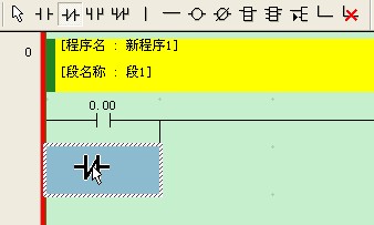 如果要在梯形圖第二行的行首輸入常開觸點(diǎn)01000,可以用復(fù)制和粘貼命令來完成。輸入定時(shí)器線圈時(shí),可用鼠標(biāo)單擊工具條中的“指令盒”按鈕,并點(diǎn)擊第二行右邊的空白處。